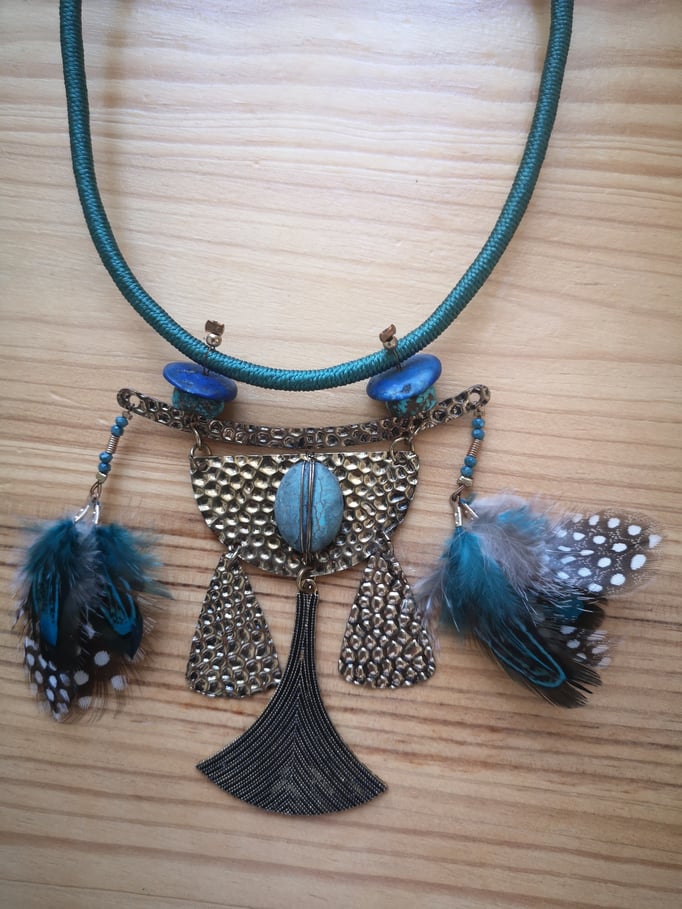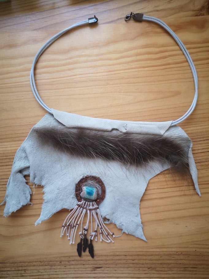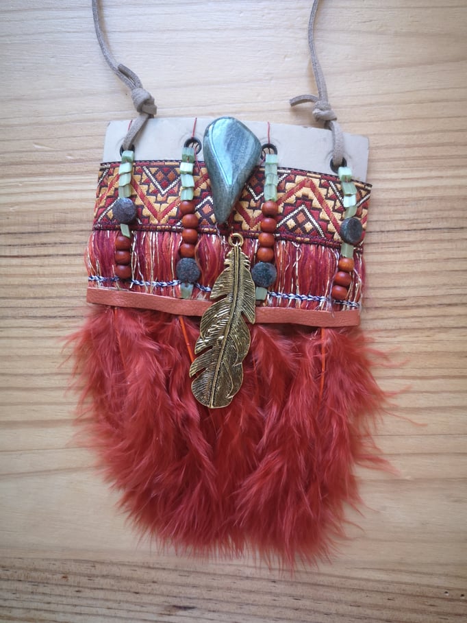 Mes créations sont des bijoux ethniques contemporains, mélanges de matières diverses (cuir, bois, argile, plumes, perles, perles de Murano (Venise), pierres semi-précieuse, métal, pâte de verre, tissu, ...) dans différents styles (amérindien, africain, tibétain notamment, d'autres pièces sont tout simplement "féminines") ; Ce sont des pièces uniques qui peuvent être portées ou encadrées selon votre souhait ; chaque pièce est vendue avec un processus de nettoyage énergétique et requière le plus grand soin.