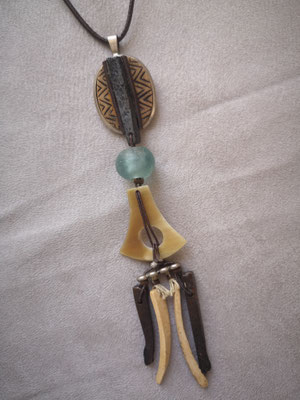 Mes créations sont des bijoux ethniques contemporains, mélanges de matières diverses (cuir, bois, argile, plumes, perles, perles de Murano (Venise), pierres semi-précieuse, métal, pâte de verre, tissu, ...) dans différents styles (amérindien, africain, tibétain notamment, d'autres pièces sont tout simplement "féminines") ; Ce sont des pièces uniques qui peuvent être portées ou encadrées selon votre souhait ; chaque pièce est vendue avec un processus de nettoyage énergétique et requière le plus grand soin.